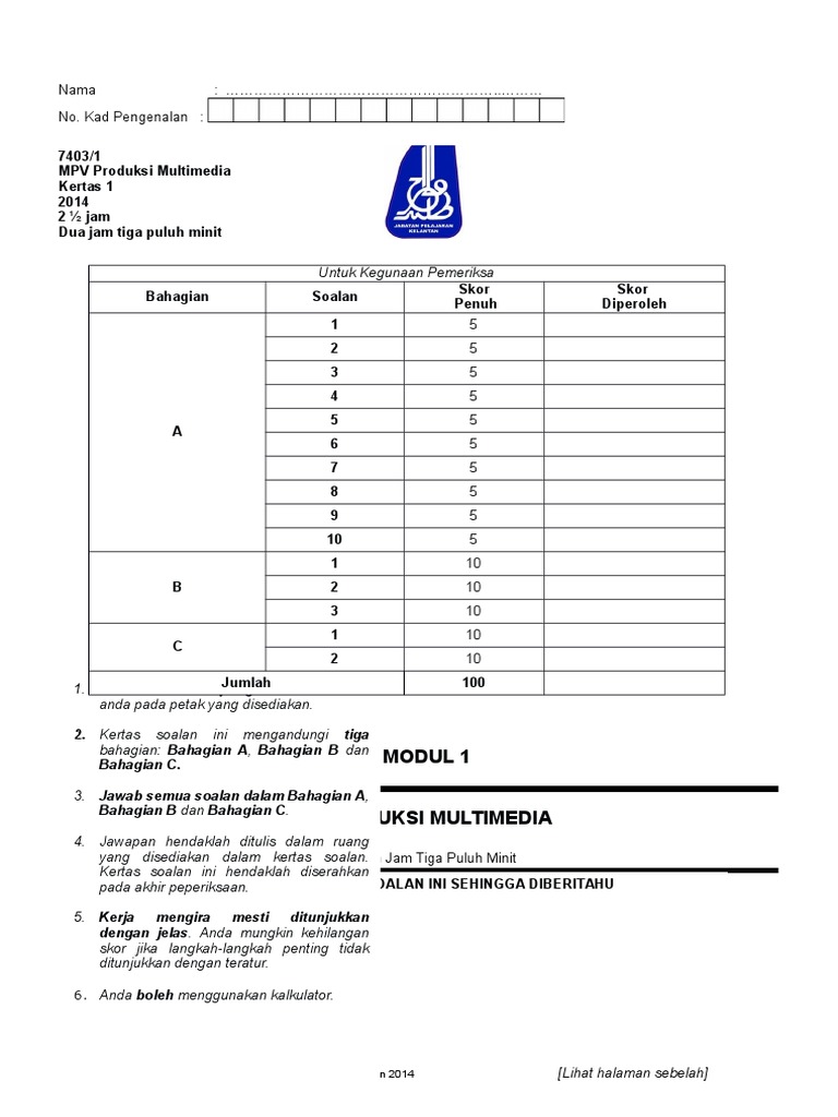 Contoh Soalan Multimedia